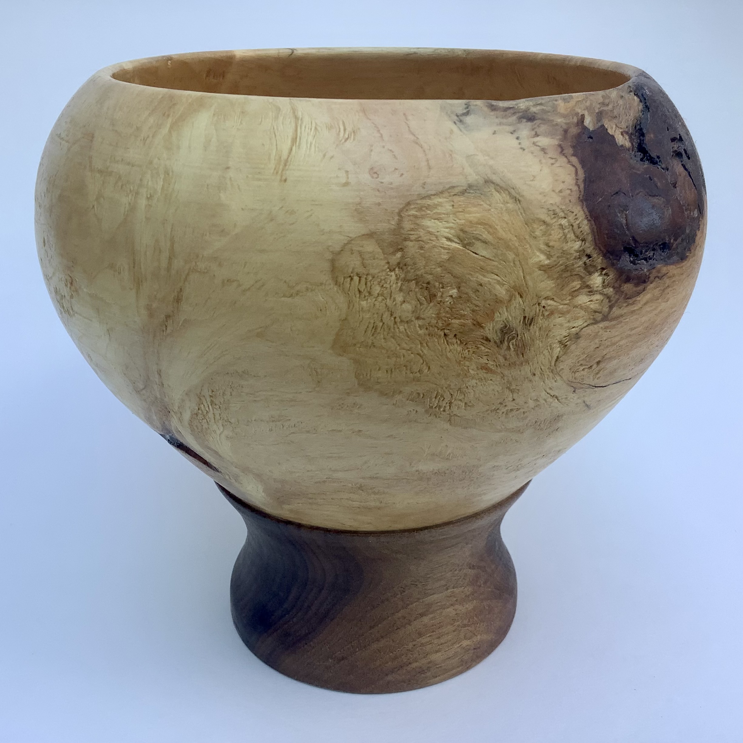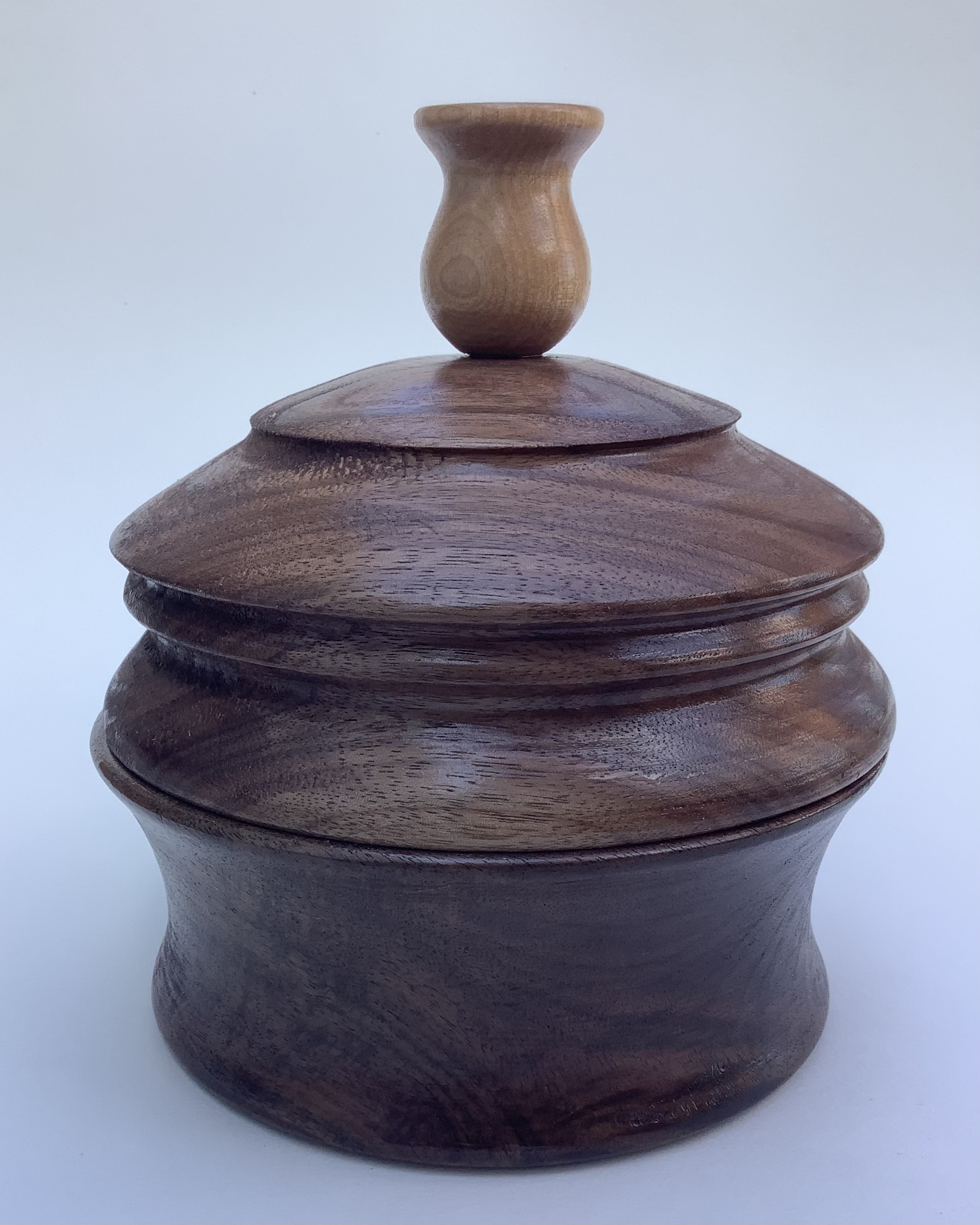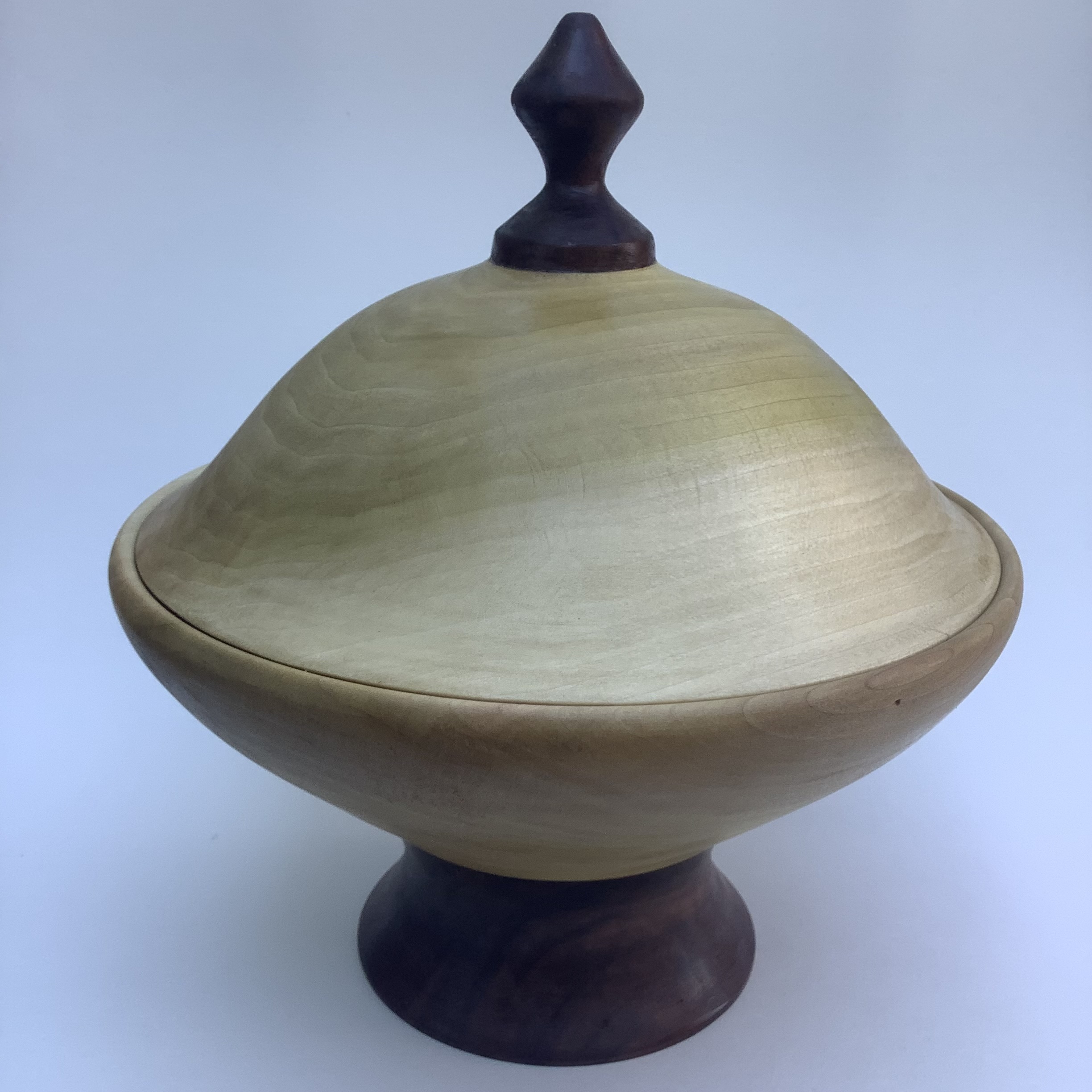 Maine Poplar Lidded Vessel with Walnut Base and Finial