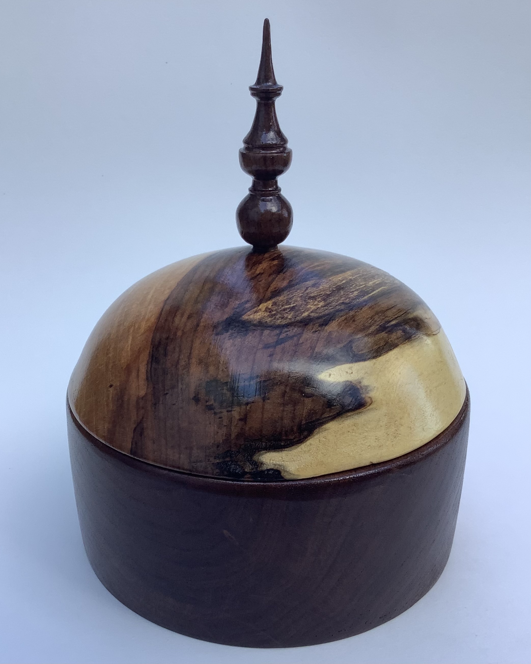 Black Walnut Vessel with Spalted Tri-Color Maple Lid and Black Walnut Finial