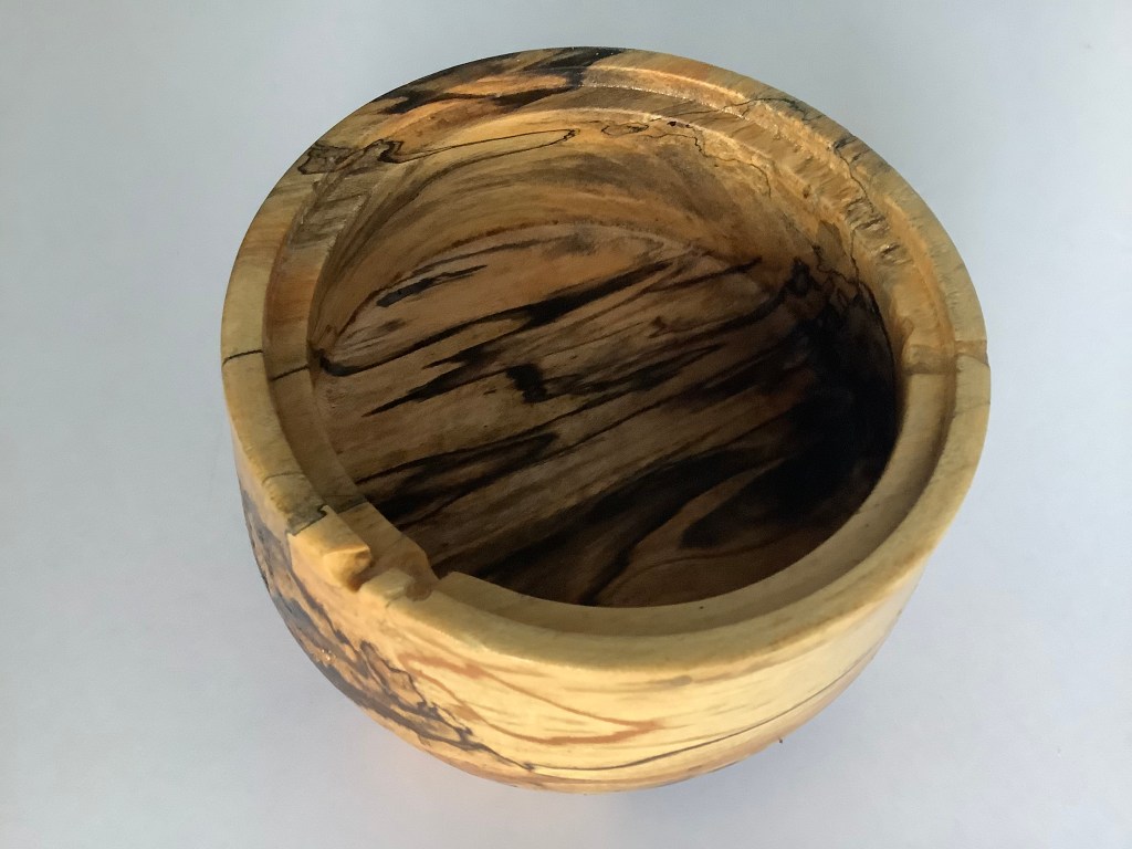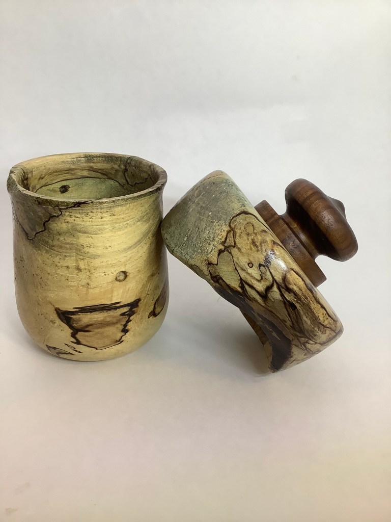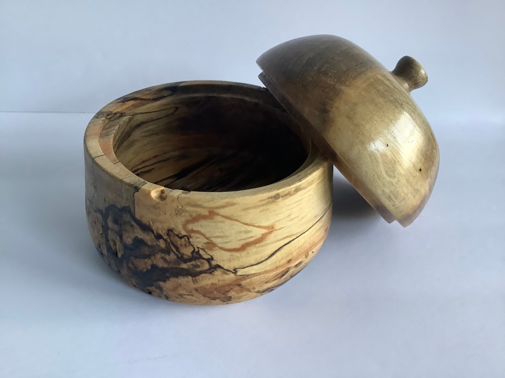 “As a child, the horse chestnut tree at Nana and Grandpa’s house provided hours of fun. Even after the house was sold and renovated, the tree stayed the same standing tall and reminding me of the time spent at that little yellow house on the hill. When we drove by and the tree was no longer there my heart dropped. Yet another sign that time keeps moving on whether we want it to or not. Months earlier my Nana had passed. Dave had just begun turning and we decided to stop and ask if we could have some of the fallen tree in the yard, the new owners obliged. Now in our living room their is a container which connects me to the past and reminds me of loved ones and fond memories. I can hold my memories in my hand.” Melinda Ferrazza